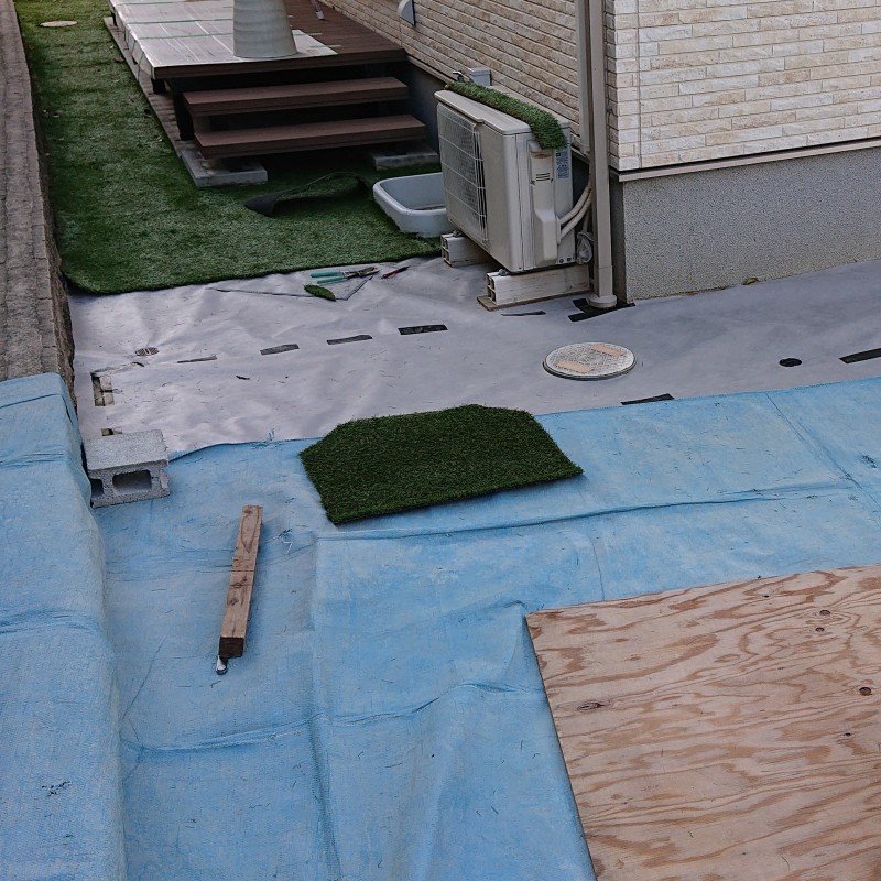 エクステリア工事 北九州市 小倉南区 防草対策人工芝工事 【Before】 【After】 【Before】 【After】 施工箇所 庭、建物周辺 主な工事内容 防草対策:人工芝工事 工事期間 約1週間 詳 細 <雑草対策> 残土鋤取り後→防草シート張り+人工芝(レギュラータイプ)仕上げ工事